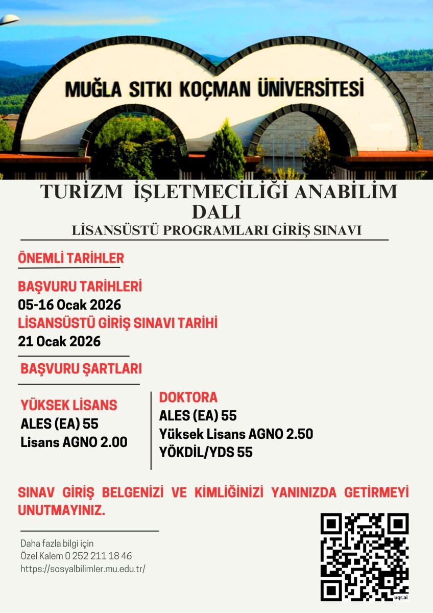 2025-2026 AKADEMİK YILI BAHAR YARIYILI TURİZM İŞLETMECİLİĞİ ABD LİSANSÜSTÜ PROGRAMLARI ÖĞRENCİ ALIM İLANI 29.12.2025 Okunma Sayısı : 18