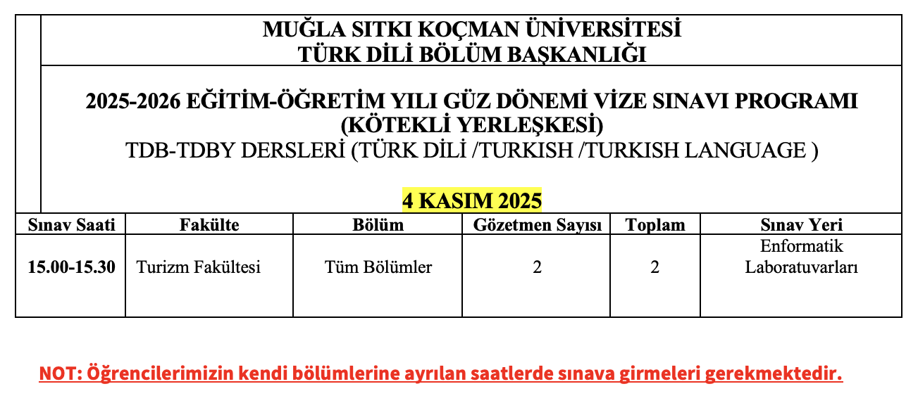2025-2026 Güz Yarıyılı ortak zorunlu Türk Dili Dersi ara sınavı