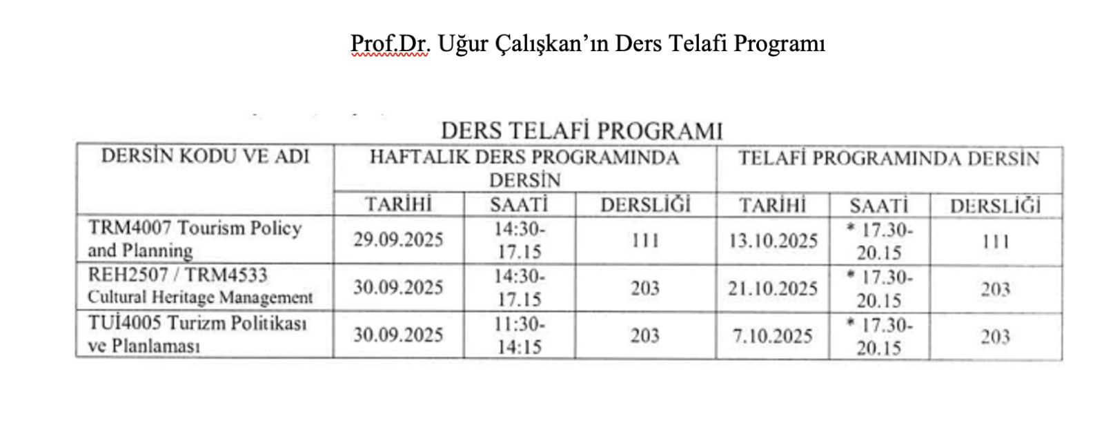 Telafi Programları Prof.Dr. Uğur Çalışkan’ın Ders Telafi Programı Son Güncelleme : 29.09.2025 15:21 Okunma Sayısı : 68